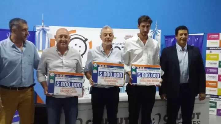 A tal fin, el titular del organismo oficial del juego, Luís María Aguirre, entregó un aporte económico al presidente del Club Social Guillermo Brown, Mariano Eliceche; al presidente del Club Social y Deportivo Ferrocarril Patagónico, Ricardo Sales, ambas instituciones de la ciudad de Puerto Madryn; y luego al presidente de Racing Club de Trelew, Jorge Iriarte. El monto que beneficia a las entidades deportivas es de 800.000 pesos.