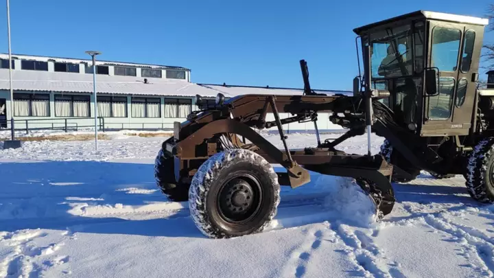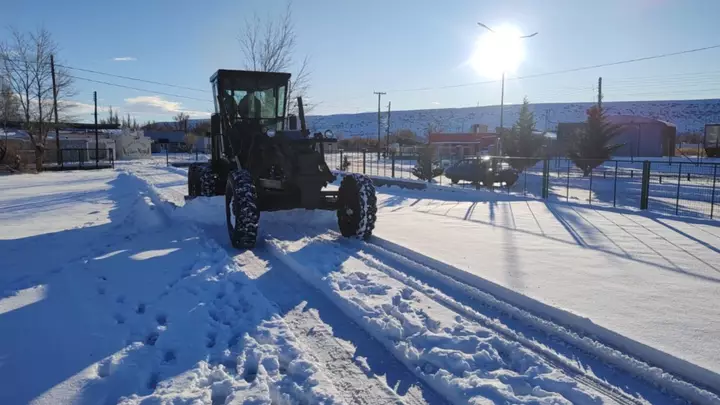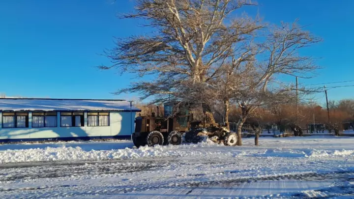 Se destacó la labor del batallón de Ingenieros Mecanizado 9 del Ejército Argentino que, apoyando con una motoniveladora, logró despejar la nieve acumulada en el acceso de la Escuela 148 de Río Mayo.