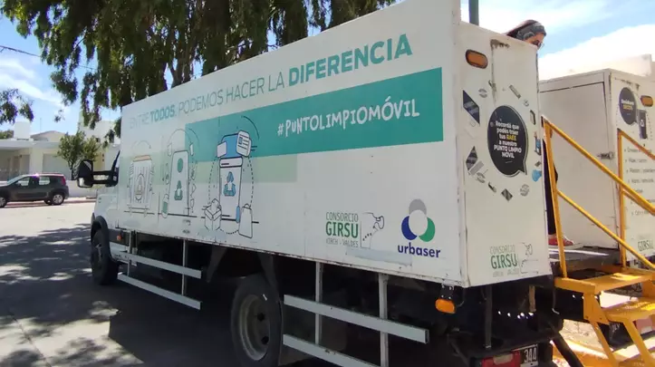 El Punto Limpio Móvil es un camión que cuenta con una estructura para contener residuos secos separados: allí los vecinos podrán acercar plásticos, metales, vidrios, papel, cartón, residuos de aparatos eléctricos y electrónicos (RAEE) y pilas, y a cambio recibirán compost elaborado en las plantas de separación, para parques y jardines.