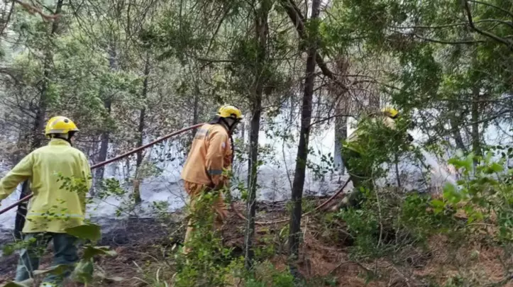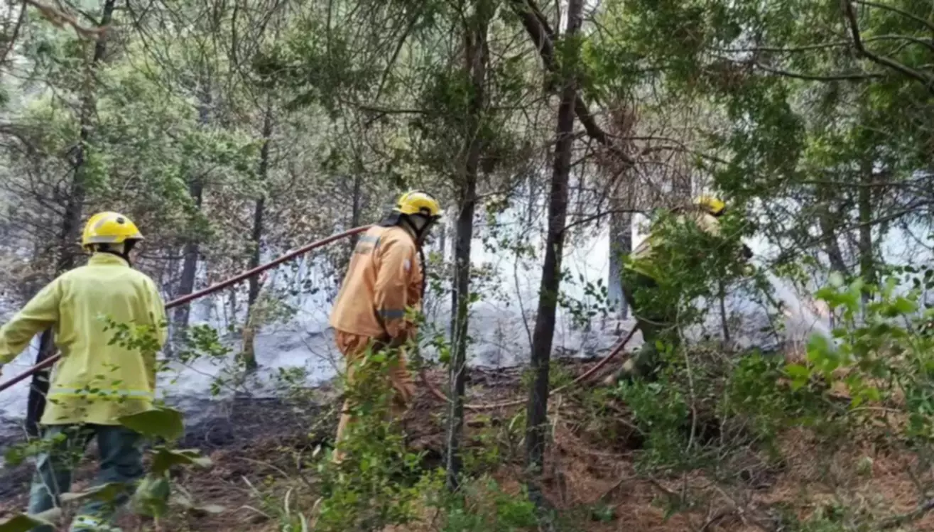 En el operativo participaron 10 brigadistas, 3 guardaparques, 2 autobombas forestales, 3 camionetas y el apoyo técnico de un helicóptero, que resultó clave para las tareas de extinción.