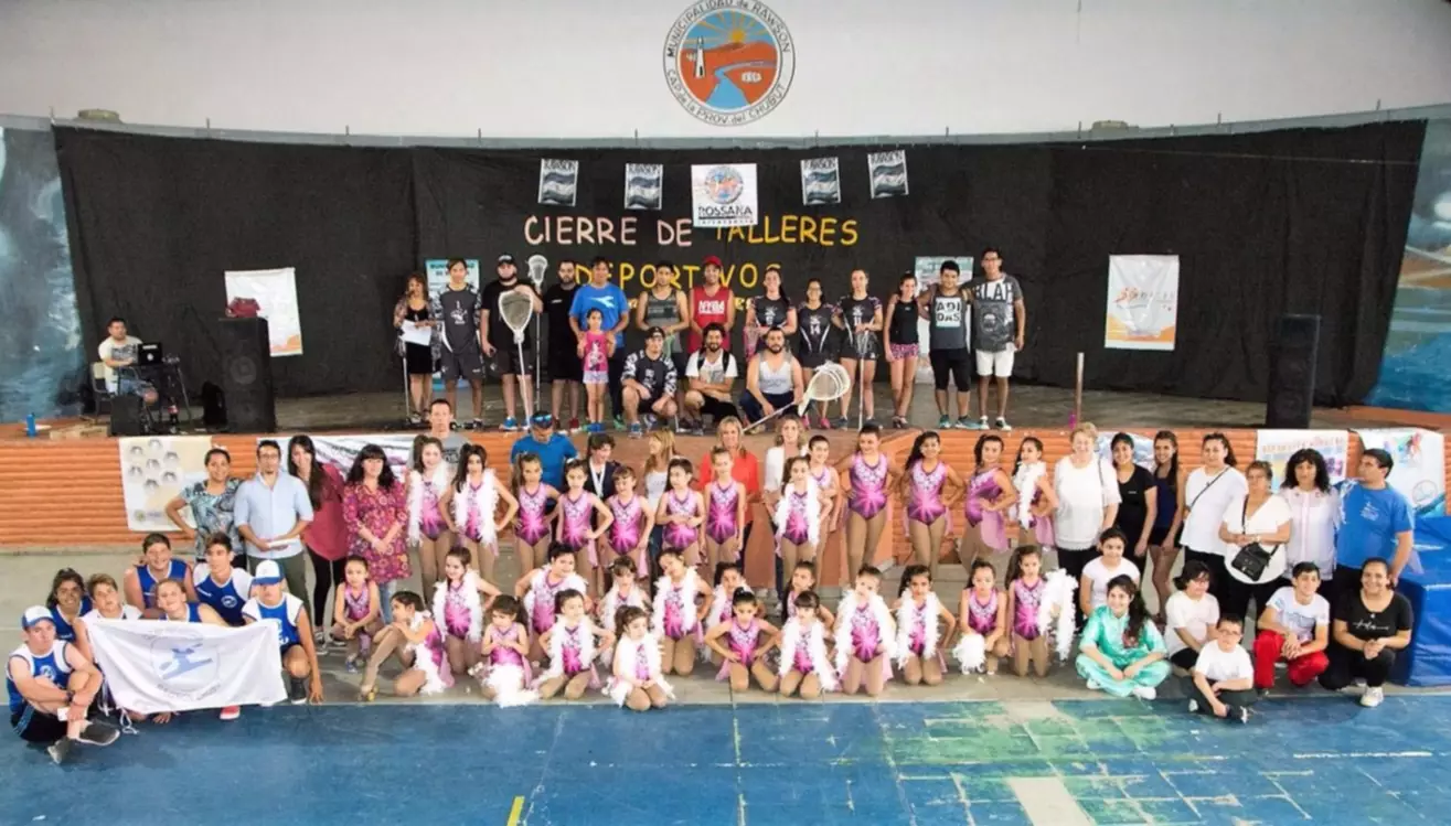 El cierre de los talleres deportivos se concretó en el Gimnasio Municipal «Héroes de Malvinas» de Playa Unión, con las presencias de la intendenta Rossana Artero, de la secretaria de Turismo, Cultura y Deportes, Lorena Marín; de la secretaria de Familia y Promoción Social, Norma Cerrudo; los talleristas y las familias de quienes participaron de estos espacios durante el año.