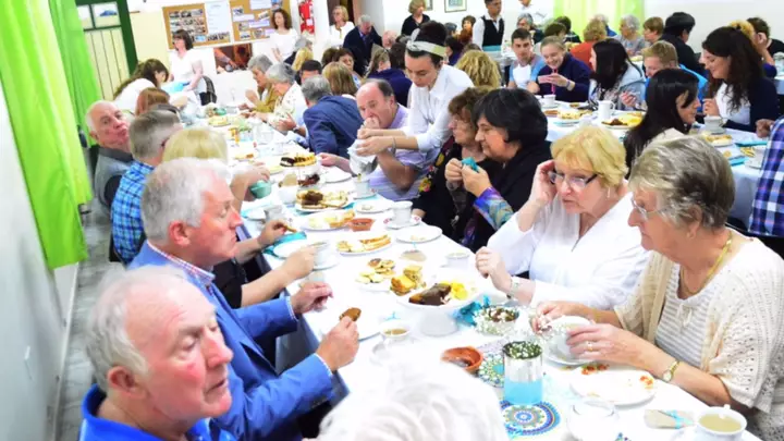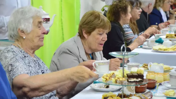 La respuesta de la comunidad al tradicional té galés fue tan grande, que muchos no pudieron acceder al servicio porque las instalaciones de la capilla estaban colmadas.