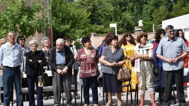 Ahora voy a referirme a Jorge Garipe, persona de una gran nobleza, nadie mejor que su amigo Pedro conoce todas la cualidades humanas de Jorge, venían de familia de ladrilleros, sabía de sus callosas y agrietadas manos y compartía otros momentos con la tarea de relojero, colaboraba también haciendo arreglos en la iglesia, en una escuela, en el hospital o con algún vecino que necesitara, en esta plaza, plató arboles rosales, hacia su mantenimiento y lo observo desde el fondo, desde la casa donde transcurrió su vida, quiero terminar este momento con especial reconocimiento por esa reunión tan amena, que estuvimos presentando un video donde hijos y nietos de inmigrantes sirio libaneses pudimos recordar a nuestra querida familia, con anécdotas, recuerdos, de los que sufrieron el desarraigo a cambio de la libertad que les dio este país, la provincia y este querido pueblo de Gaiman, y como dice la canción “volver a empezar”.