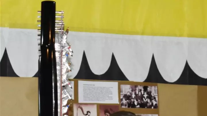 Participaron de la velada los alumnos del Ysgol Gymraeg y Gaiman, la joven Helen Green interpretando música tradicional en el arpa.