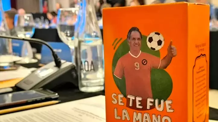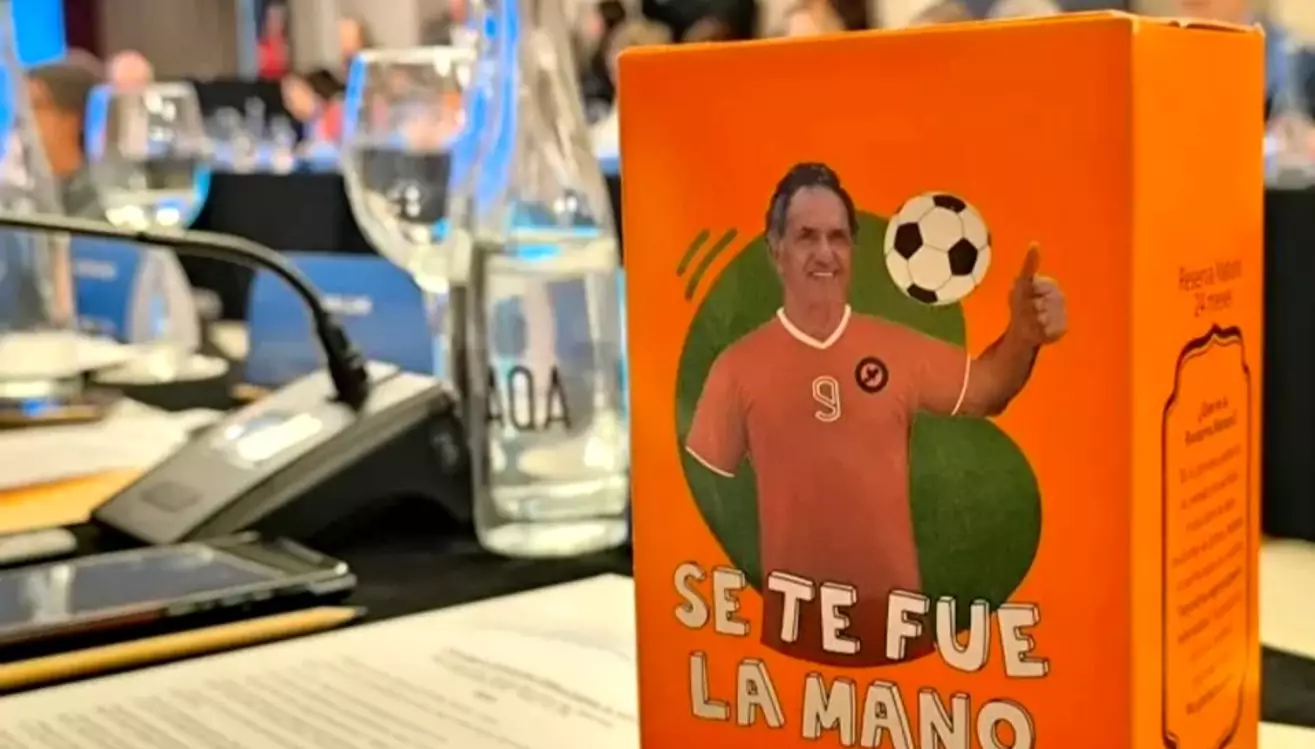 El momento de humor se completó cuando mostró el reverso del paquete de yerba, que lleva en grandes letras el eslogan “Se te fue la mano”, una alusión al accidente que sufrió en 1989 en el río Paraná, en su época de motonauta, a causa del cual perdió parte de su brazo derecho.