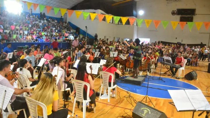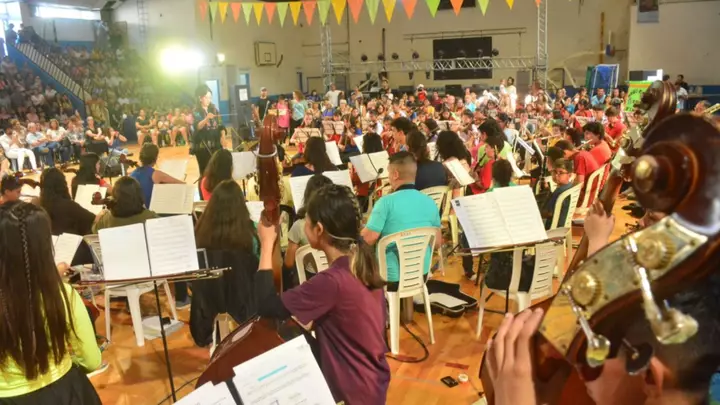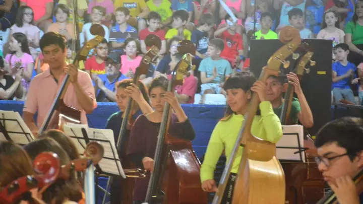 La Orquesta Infanto Juvenil del barrio INTA, dirigida por Mariana Navarro, brilló sobre el gimnasio y entregó un espectáculo musical hermoso ante una gran audiencia. Por la amplia convocatoria, se decidió realizar otra fecha este sábado desde las 20 horas en el Gimnasio Municipal de Gaiman.