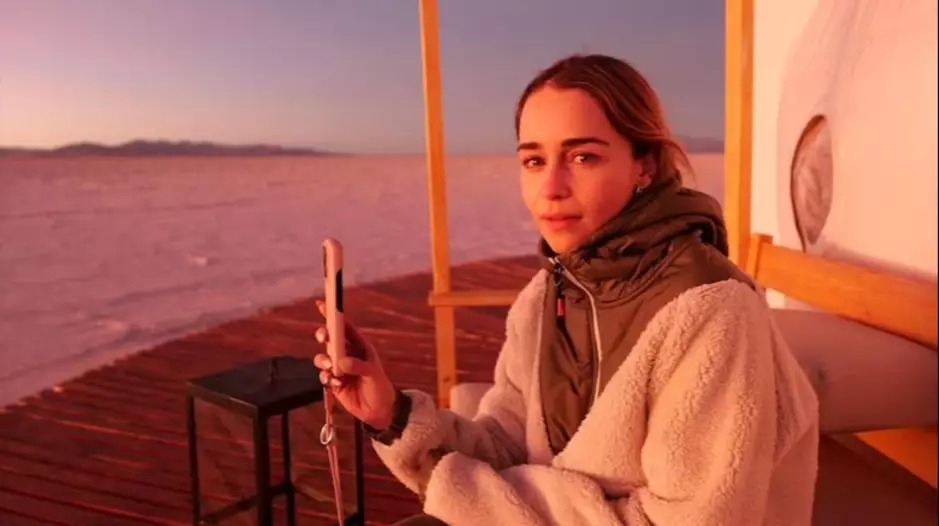 La actriz británica Emilia Clarke, protagonista en Game Of Thrones compartió en su cuenta de Instagram algunas imágenes de su paso por Argentina, donde decidió pasar unos días de vacaciones. Compartió fotos comiendo alfajores de maicena, con mate al lado, paseando por las Cataratas del Iguazú y por las Salinas Grandes, donde se la ve sonriendo descalza sobre el suelo blanco.