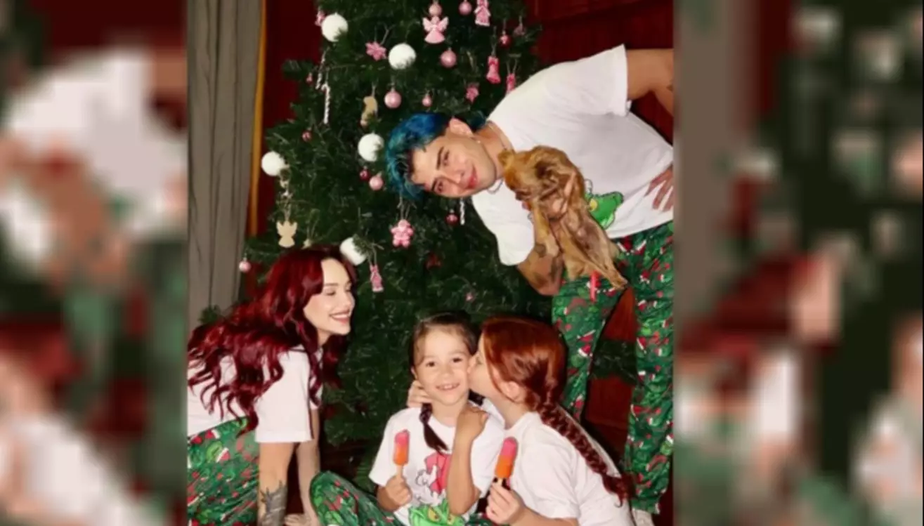 La pareja de la Joaqui y Luck Ra decidió enviar un mensaje de saludo navideño a sus seguidores. Eligieron hacerlo con una foto donde se los ve junto a las hijas de ella y la mascota, con el árbol de Navidad detrás.