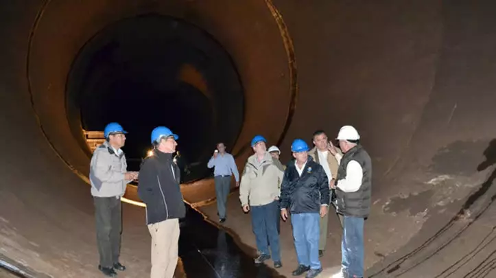 Los trabajos se desarrollan durante casi 15 días y es la ocasión de observar de manera excepcional sectores de las instalaciones que normalmente se encuentran cubiertos por enormes masas de agua a presión. Touriñán estuvo acompañado por el intendente de Trevelin, Juan Garitano, y en el lugar fue recibido por el gerente de la Central, el ingeniero Jorge Mastronardi.
