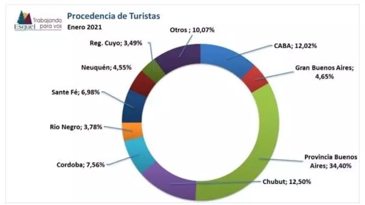 Con la apertura nacional de la actividad en el contexto de pandemia se mostraron números positivos respecto a la ocupación en Esquel, que alcanzó el 45% en Enero, donde es sobresaliente la segunda quincena que alcanzó el 50%. Se registró un ingreso de 9841 personas.