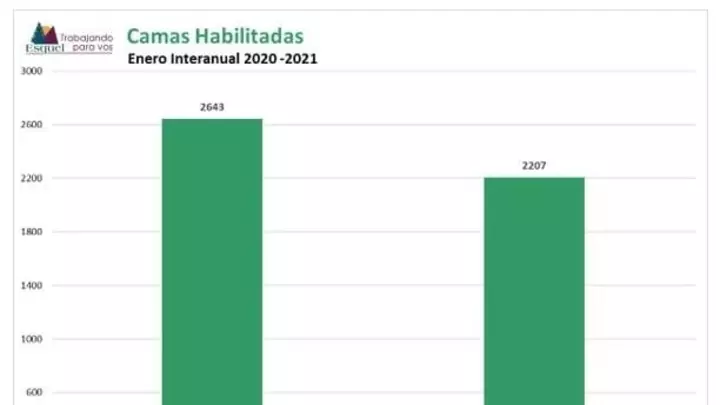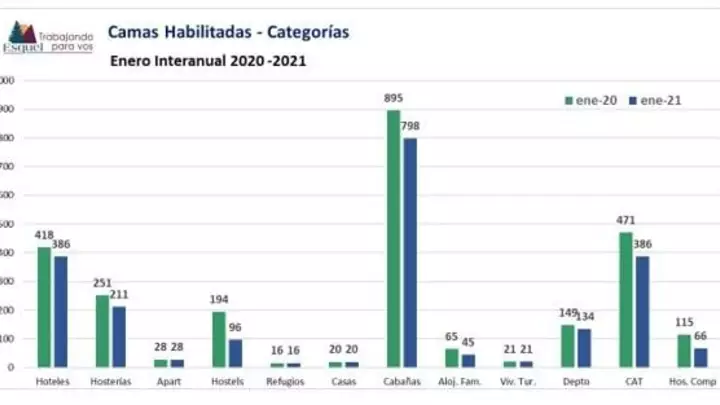 En el informe del organismo municipal se destaca también que, ante la pandemia, hay una baja de 436 camas respecto al año 2020. En este rubro hay sectores que se vieron afectados, como por ejemplo en Hoteles que disminuyó la cantidad de camas de 418 a 386; en Hosterías la baja fue de 251 a 211, en Cabañas bajó de 895 a 798 camas, y en el caso de los Hostels la merma fue de 194 a 96, entre otras categorías que detalla la Secretaría municipal de Turismo.