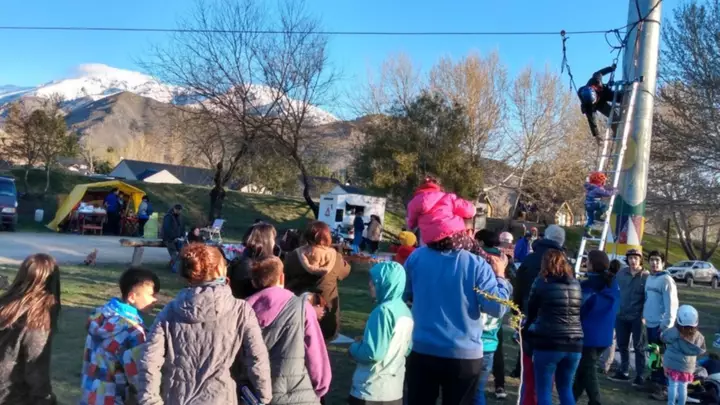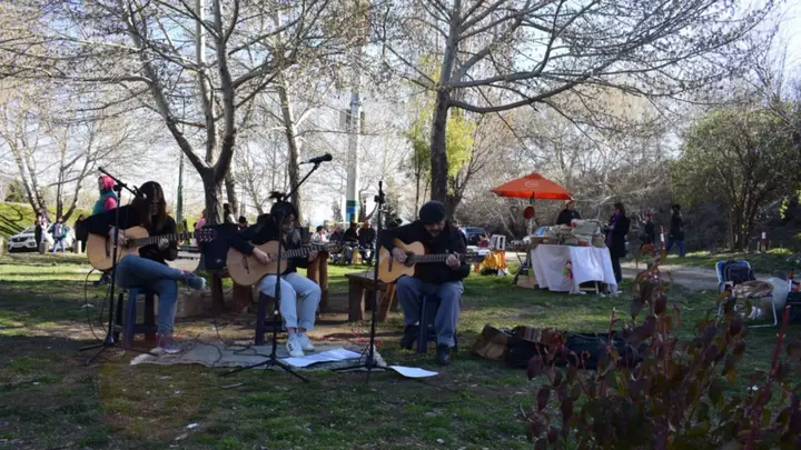 Cientos de vecinos se acercaron a celebrar la llegada de la primavera en La Cascada de Esquel. Allí pudieron disfrutar de una tarde de sol, con música en vivo, carritos de comida, paseo ferial y hasta un descenso en tirolesa.