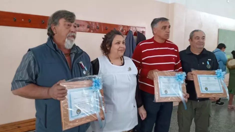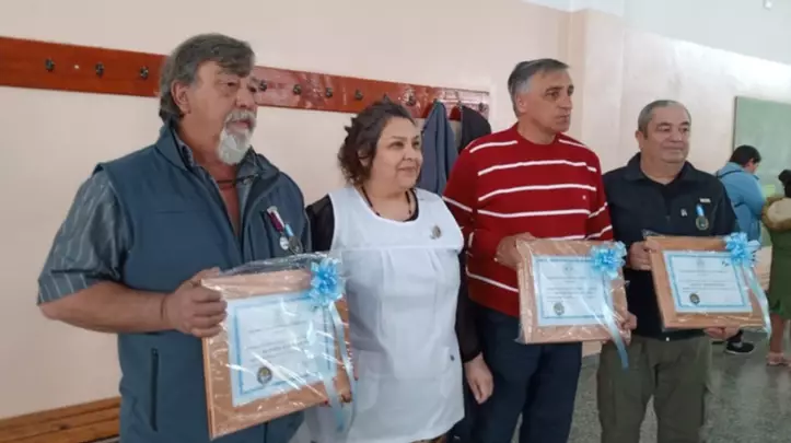 También asistieron antiguos directivos, ex docentes, alumnos egresados y miembros de la comunidad educativa. Durante el acto se entregaron distinciones a cuatro combatientes de Malvinas que cursaron sus estudios primarios en dicha escuela (foto).
