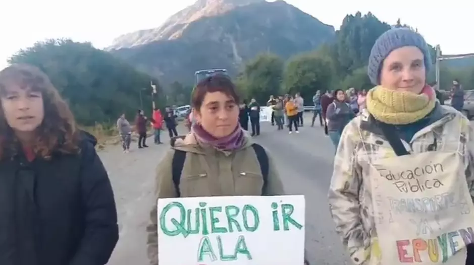 Padres de alumnos de diferentes escuelas de la Comarca Andina decidieron cortar la Ruta 40, para visibilizar su reclamo por la falta de transporte escolar.