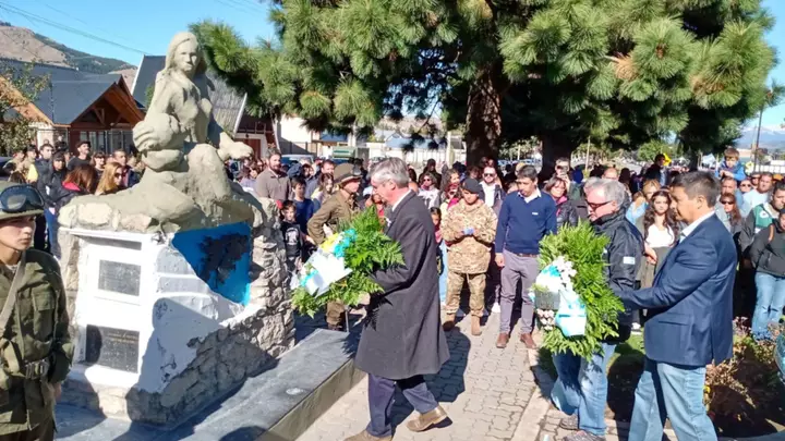 Durante la ceremonia se depositaron ofrendas florales al pie del Monumento que recuerda a los soldados caídos en Malvinas y el Concejo Deliberante hizo entrega de los certificados que reconocen como “Ciudadanos Ilustres” a los ex combatientes de Malvinas que residen en Esquel.
