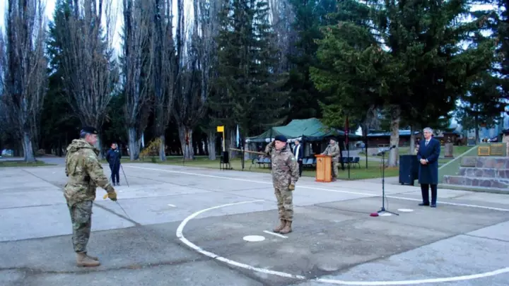 El acto en la localidad se realizó esta mañana en la Plaza de Armas y el Intendente de Esquel fue invitado por el jefe del Regimiento de Caballería, el teniente coronel Carlos Daniel Castro Olivera.