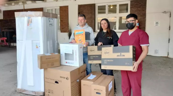 En la oportunidad, el director del Hospital, Cristian Ruminahuel, conjuntamente con la enfermera Elizabeth Gonzáles, recibieron de manos del jefe comunal: un desfibrilador, una heladera con freezer, dos computadoras y una fotocopiadora, entre otros elementos.