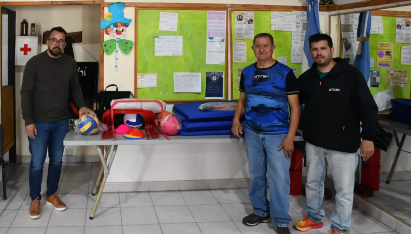 La asociación vecinal del barrio Jorge Newbery recibió ayer una serie de elementos deportivos destinados a fortalecer las actividades que la entidad desarrolla, especialmente talleres de gimnasia para adultos que funcionan los miércoles y viernes. La entrega estuvo encabezada por el intendente Matias Taccetta y el subsecretario de Deportes municipal, Hernán Maciel, recibiendo los elementos el presidente de la junta vecinal, Pedro Manosalva y otros integrantes de la comisión.