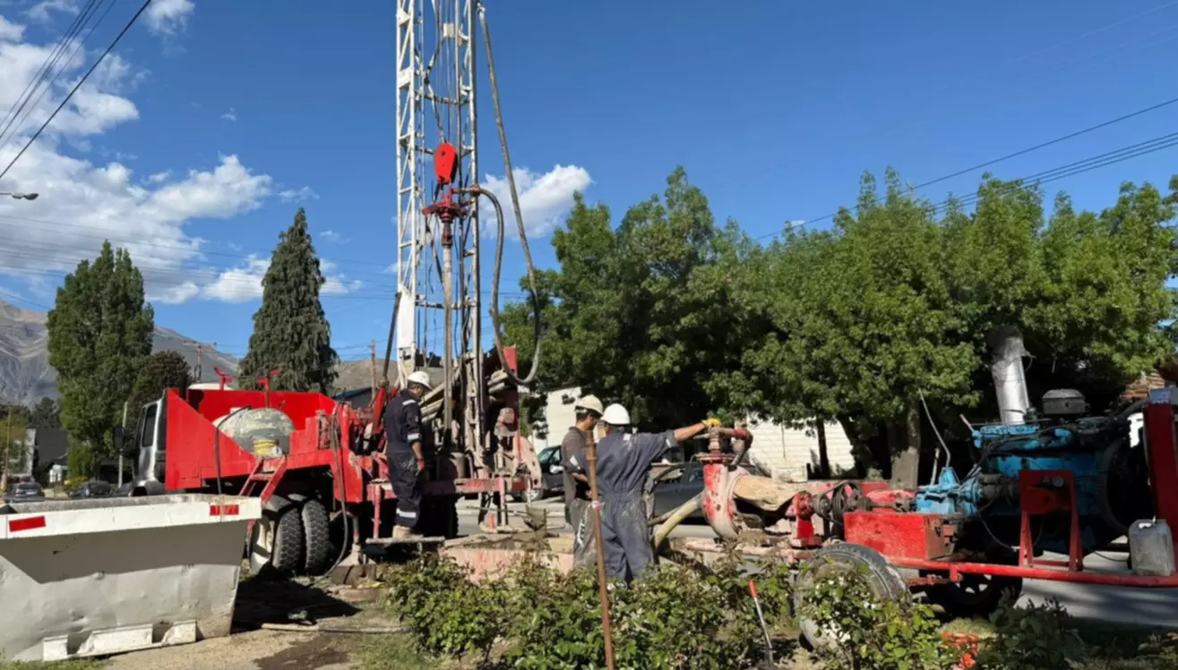 Se informó que con esta nueva perforación, el municipio podrá asegurar el riego de toda la Avenida Ameghino, desde el ingreso a la ciudad hasta el tradicional muñeco de nieve, y también abastecer parte del sistema de riego de las plazoletas de Avenida Perón.