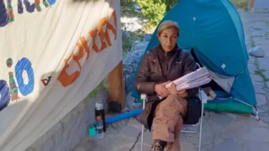 La vecina persiste desde hace varios días en esa situación de acampe frente al municipio y se supo que ayer inició una huelga de hambre.