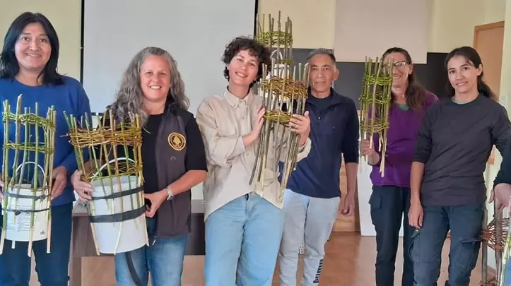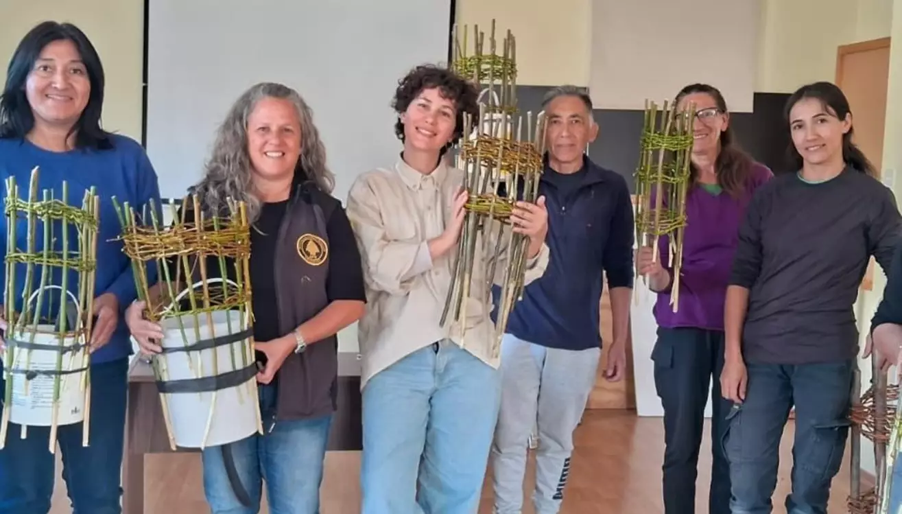 Los ecocanastos son estructuras útiles para proteger las plantas del daño que pueden causar animales o herramientas al cortar el pasto. Lo mejor es que se construyen reutilizando materiales que se encuentran en la zona, como ramas de especies invasoras (retama, entre otras) o restos de podas. La experiencia fue tan bien recibida que este mismo taller se replicará próximamente en Corcovado Sur, Los Cipreses, Parque Nacional Los Alerces.
