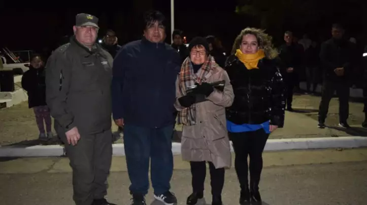 Por su parte el Jefe del Escuadrón 37 de Gendarmería Nacional en José de San Martín, Comandante Principal Sergio Marcelo Tejerina realizó la entrega de una placa conmemorativa a los hijos del extinto Veterano de Guerra Jorge Luis Coraza. Seguidamente el intendente Rubén Calpanchay procedió a hacer la entrega a familiares del extinto Veterano de Guerra José Ramon Gutiérrez. Las palabras alusivas estuvieron a cargo de Canela Barrera.