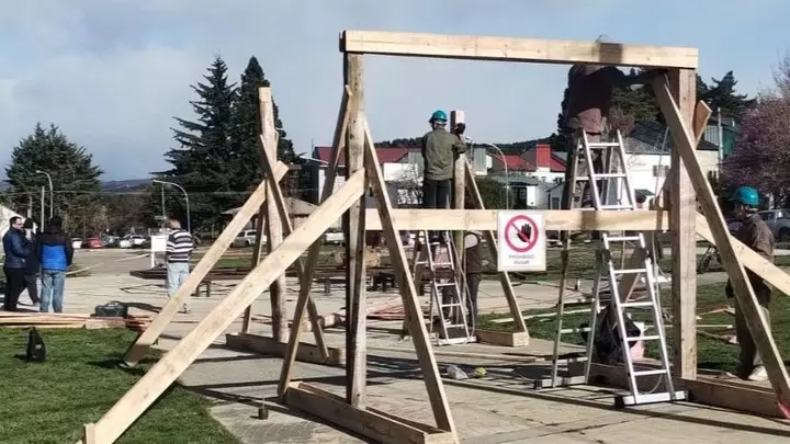 Comenzó instalación de pérgolas y avanza la obra integral de remodelación en Plaza del Cielo