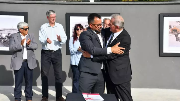 En el marco de la inauguración de la Plaza del Cielo, realizada el miércoles pasado, el intendente Matías Taccetta y el ministro de Educación de la Provincia, José Luis Punta, firmaron un acta acuerdo para elevar a la Legislatura del Chubut un proyecto que permitirá ceder formalmente el predio a la órbita municipal.