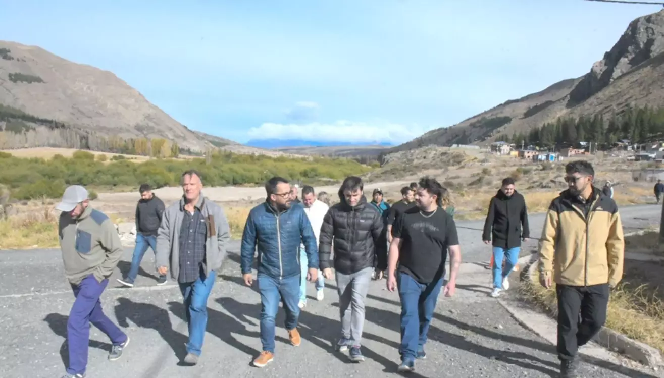 El gobernador Ignacio Torres visitó ayer Esquel para recorrer la obra de gas en el Barrio Valle Chico, un plan de IPV compuesto por 108 viviendas, entregadas en el año 2021 por el ex gobernador Mariano Arcioni pero sin los servicios de agua y gas.