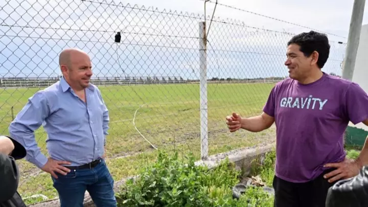 El Club Social y Deportivo Dolavon está próximo a cumplir 100 años de vida, cifra a la que llegará en 2025. Sastre estuvo en el predio junto al presidente actual, Jorge Alfaro, y parte de la comisión directiva.