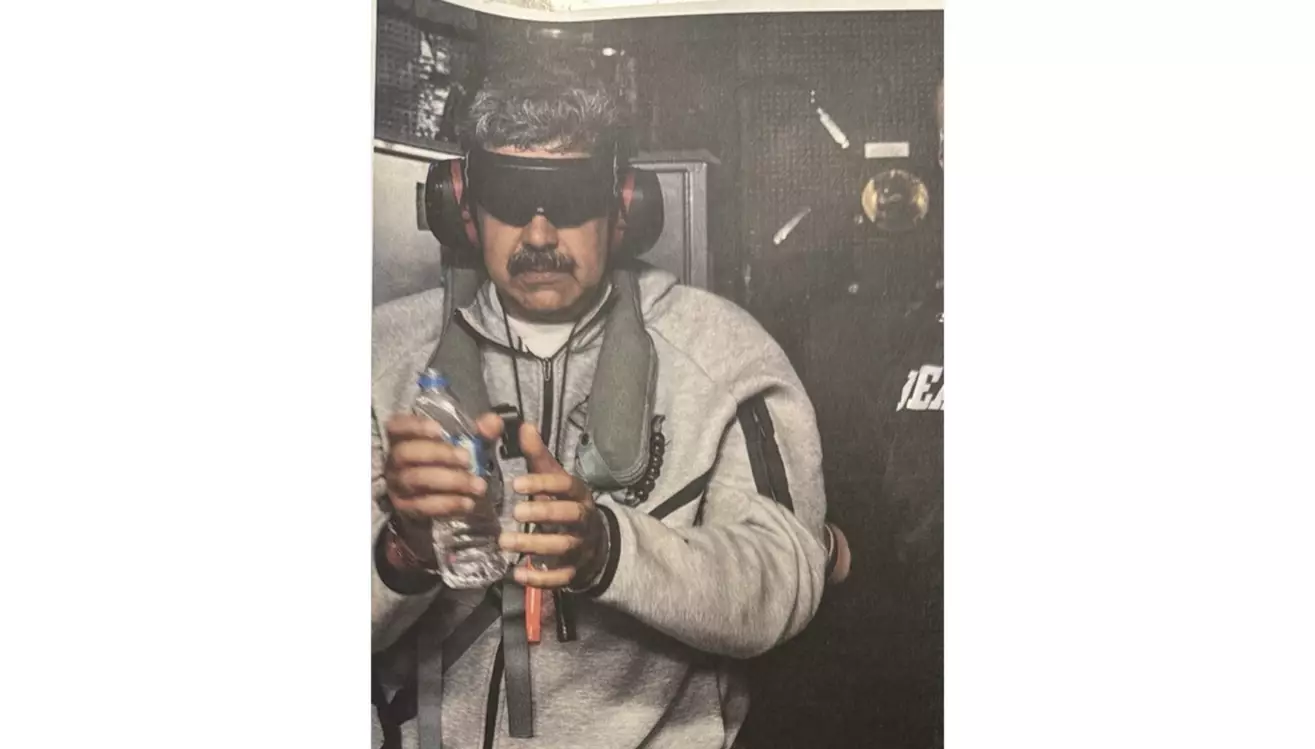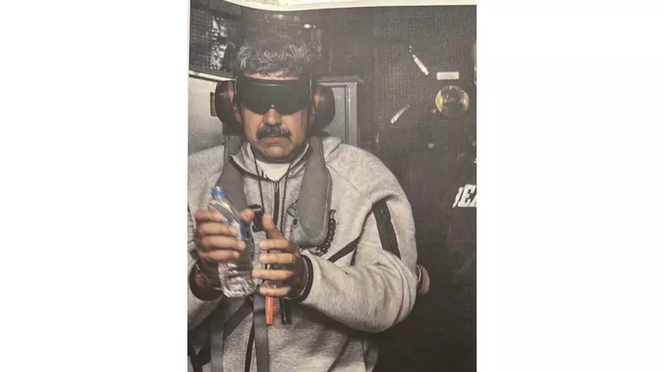 En la imagen, Maduro aparece de pie, esposado, vestido con un mono gris, con gafas de protección y audífonos, mientras sostiene una botella de agua. Junto a él se observa a un funcionario de la Administración para el Control de Drogas (DEA). Según se informó, la captura fue resultado de una operación llevada adelante por fuerzas del orden estadounidenses.