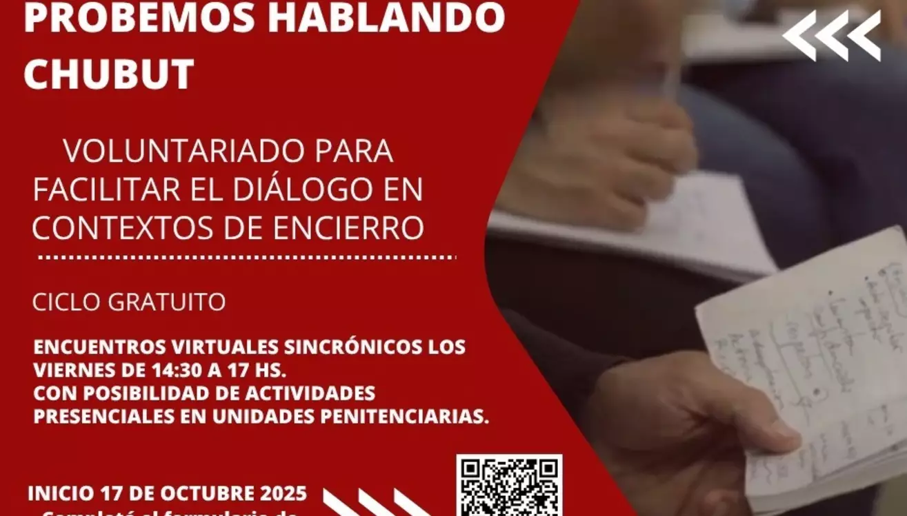 Se iniciará el próximo viernes 17 de octubre el ciclo de Formación 2025 del programa “Voluntariado para Facilitar el Diálogo en Contextos de Encierro”, una experiencia gratuita destinada a preparar a quienes deseen integrarse a los equipos de facilitación.