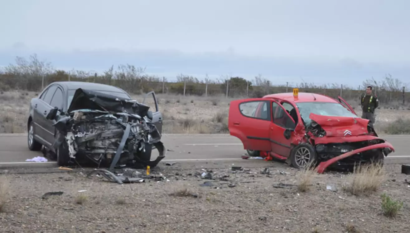 El hecho ocurrió ayer cerca de las diez de la mañana en la Ruta Nacional 3, altura kilómetro 1362, cuando un Citroen C1 color rojo y un Toyota Camry negro colisionaron de frente produciendo el deceso de cuatro de los cinco ocupantes del primero de ellos, una familia chilena de la ciudad de Temuco.