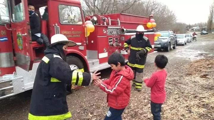 Se compartió una torta y una chocolatada, viviéndose con emoción el primer sonido de la sirena en la mañana del 2 de junio y se acercaron vecinos y niños y niñas del pueblo, que llevaron dibujos de sus bomberos.