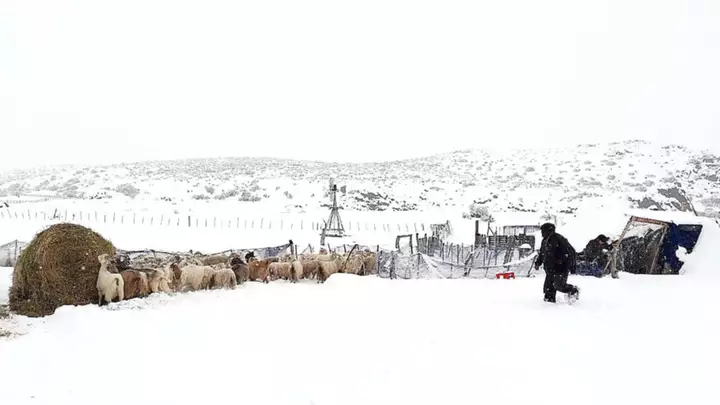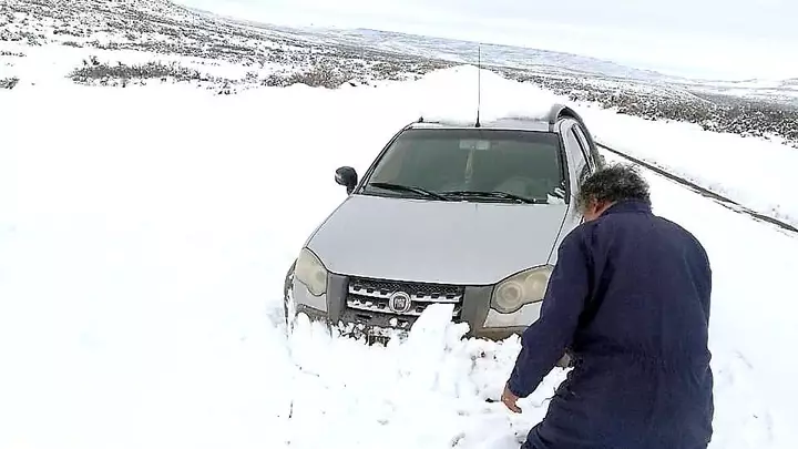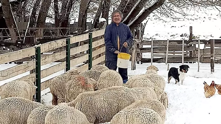 Por la nevada, es imposible salir, pero apenas deja de caer, hay que salir a atender los animales, algo bien entendido por los pobladores rurales.