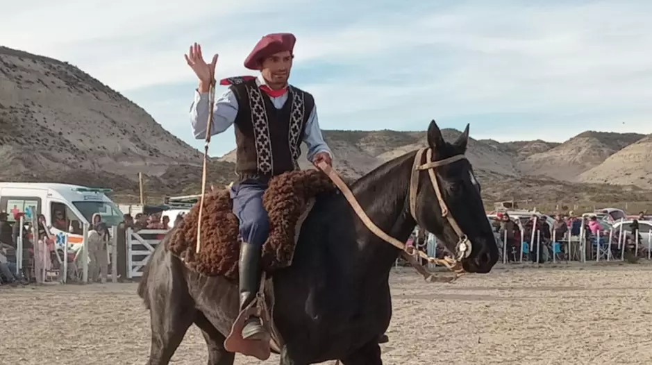 Se trata del jinete Raúl Bujer de Gualjaina, campeón provincial y quien compitió en el Festival Nacional de Doma y Folklore de Jesús María