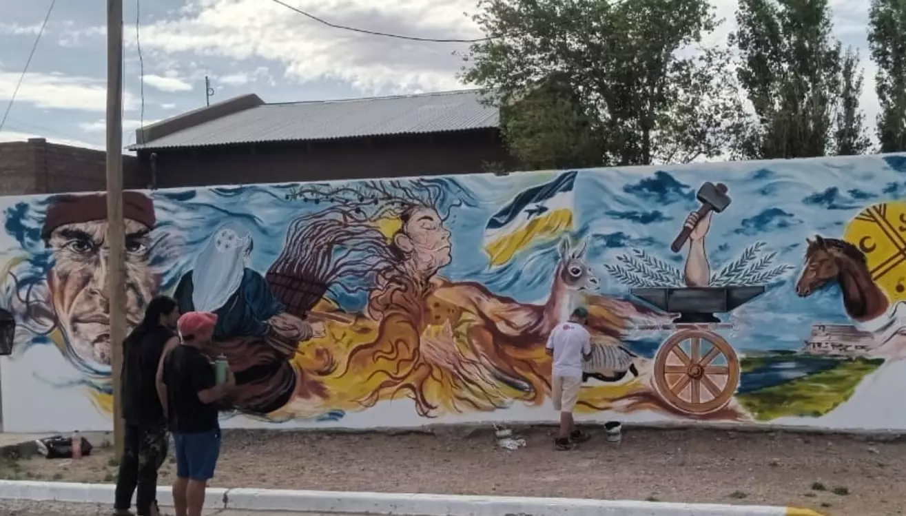 Un mural lleno de colores, belleza y sobre todo, refleja la esencia de los habitantes del lugar, será inaugurado en el marco del 89º aniversario de Paso de Indios. Se está pintando en el muro de la vivienda del comerciante Luis Sastre, situada frente al Gimnasio Municipal. Para quienes transiten la Ruta 25 y paren en la estación de servicio será un nuevo atractivo para tomarse fotografías en esta obra de arte pensada y diseñada por jóvenes de la localidad.