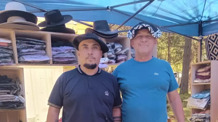 Los chicos de Regionales "Mi tierra", Norberto y Marcelino, de la provincia de Neuquén, llegaron con un montón de propuestas de pilchas gauchas a la Fiesta del Ternero Cordillerano y les fue muy bien, tuvieron buenas ventas y no pararon de vender y charlar con la gente.