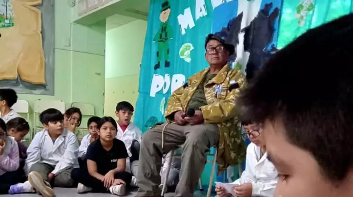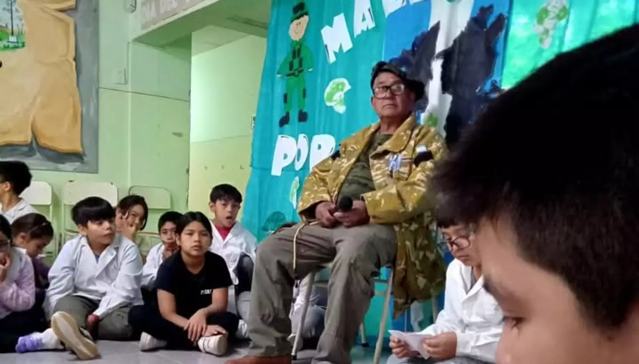El martes fue homenajeado por la comunidad educativa de la Escuela Nro 77, donde docentes y alumnos le leyeron historias, poesías, hicieron alegorías en su honor, lo abrazaron y le pidieron autógrafos.