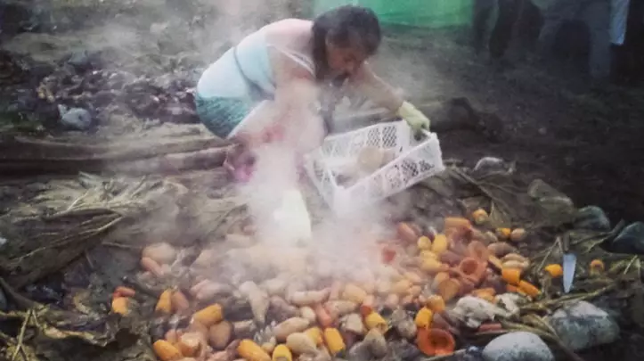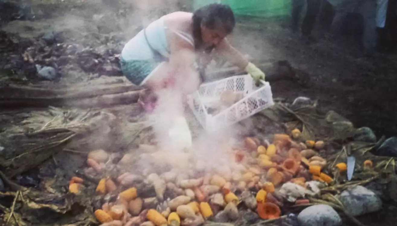 Cuando descubrieron los pozos y el aroma a las carnes y verduras se expandió, los hombres y mujeres a cargo de la preparación bailaron con los brazos en alto.