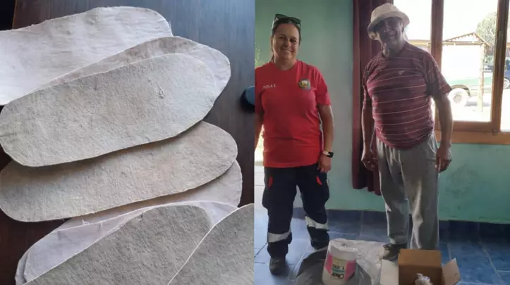 Vanesa Turra, vecina de Cholila, bombera y brigadista histórica de esta localidad, entre imágenes del incendio y desolación, compartió en sus redes sociales un gesto solidario que los conmovió hasta las lágrimas: el vecino Lele Santana, poeta y escritor de la localidad, se hizo presente en la tarde de ayer con plantillas para los brigadistas, confeccionadas por él mismo de manera artesanal. Las cortó y preparó llegando de Esquel, ciudad en la que será operado del corazón.