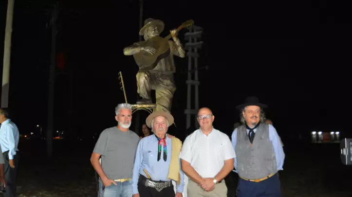"El sábado, cientos de vecinos, funcionarios municipales, artistas y admiradores se congregaron a la vera de la Ruta 22 para presenciar el descubrimiento de un monumento en su honor, obra del escultor Aldo Beroisa, ubicado en el acceso a La Adela, el pueblo que lo vio nacer y crecer como artista.