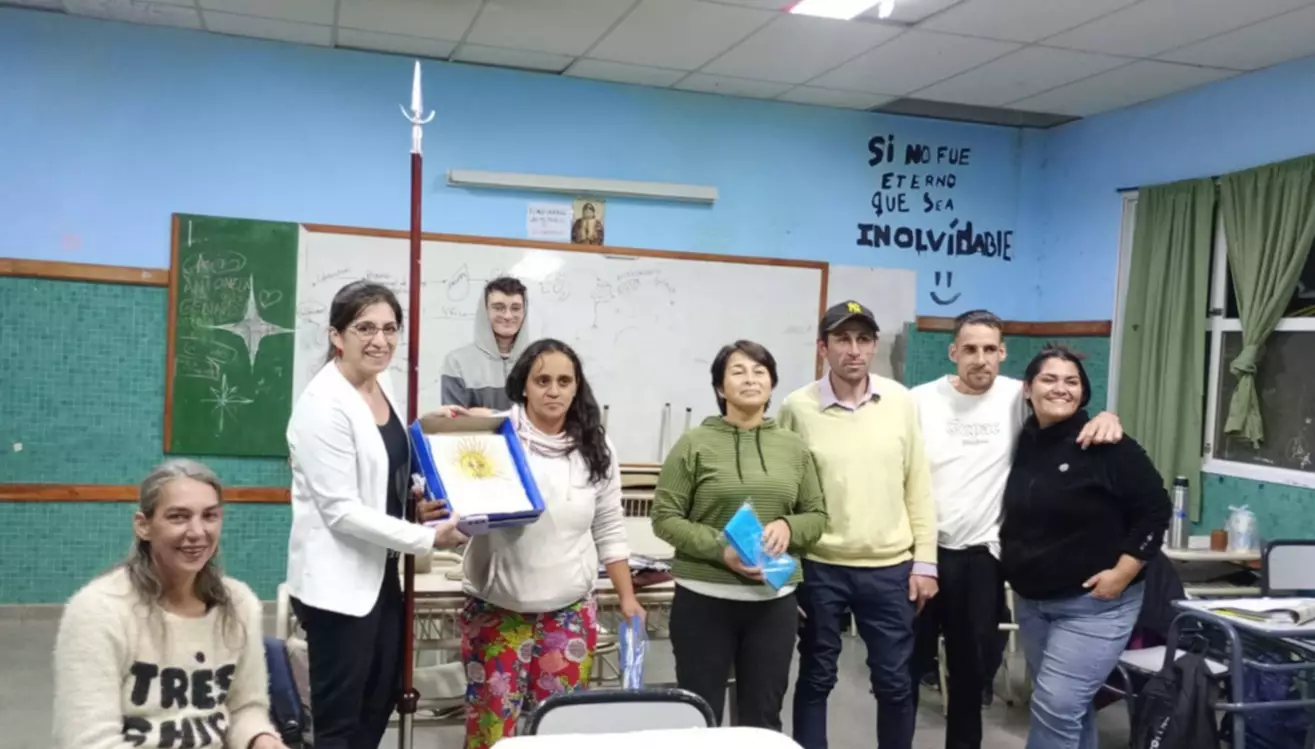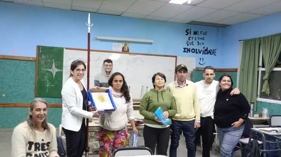 "Deseamos expresar nuestro agradecimiento a la estudiante de EPJA, Andrea Oyarzo, y a Dora Mariguán por las gestiones realizadas para la adquisición de la Bandera de Ceremonia Nacional destinada al turno vespertino. Este logro no sólo representa un aporte significativo a nuestra institución, sino que también refleja el compromiso, la participación y la construcción colectiva de la educación, entendida como una tarea compartida entre estudiantes, familias y comunidad", señalaron, compartiendo las fotos de esta instancia.