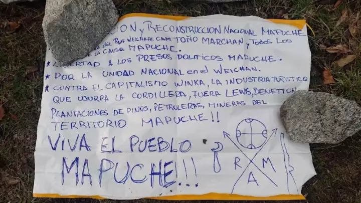 Este jueves a la mañana, los afectados encontraron un papel con una inscripción, relacionada a una supuesta reivindicación de una comunidad mapuche.