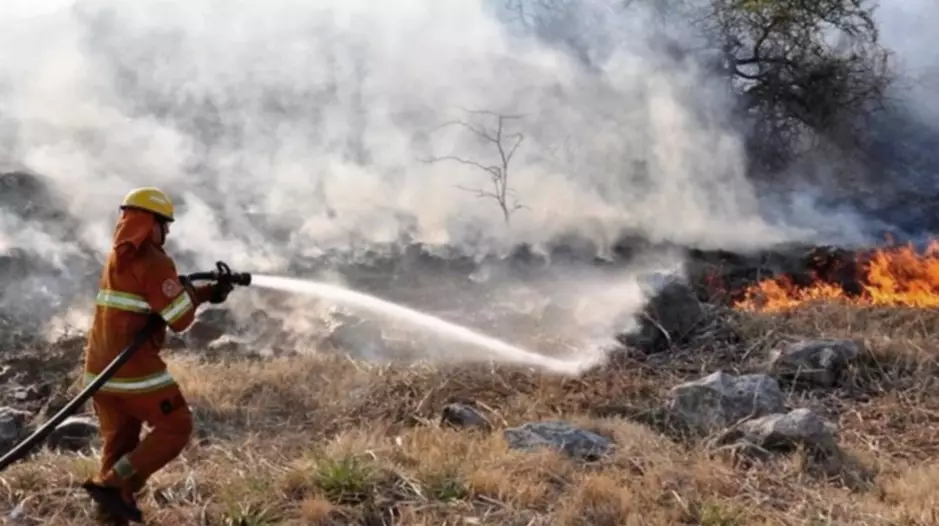 Mientras que en la región patagónica padecemos las lluvias, bomberos voluntarios y brigadistas del centro del país trabajan este domingo para combatir el fuego.