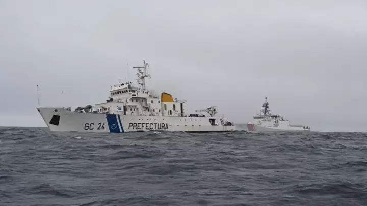 Los guardacostas GC-24 Mantilla, de la Prefectura Naval Argentina, y USCGC James, de la Guardia Costera de Estados Unidos, realizaron un adiestramiento conjunto en altamar sobre control de los espacios marítimos y vigilancia de las tareas de pesca, a 235 millas náuticas (alrededor de 378 kilómetros) de Mar del Plata, del que participaron alumnos de las Escuelas Superior y de Cadetes de la Autoridad Marítima argentina como parte de su proceso de formación en el ámbito.