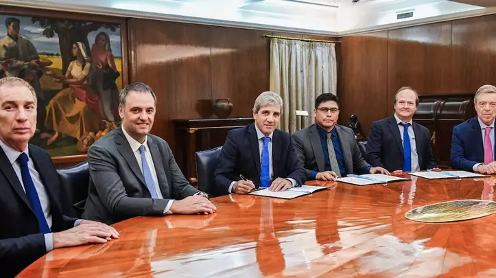 El ministro de Economía, Luis Caputo, recibió esta tarde a los gobernadores de las provincias del sur para firmar un convenio como ya había hecho con Chubut. Los distritos que faltan firmar