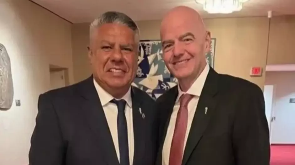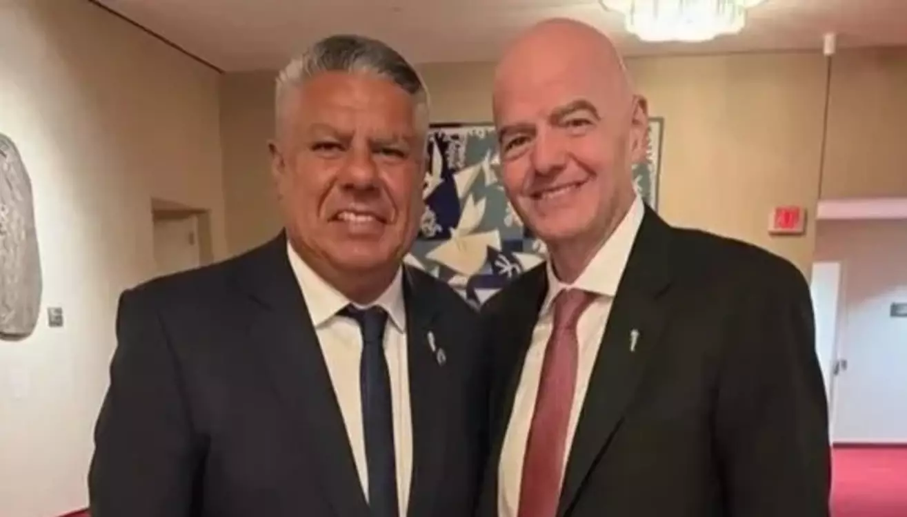 Tapia se mostró con el presidente de la FIFA en medio del escándalo con Milei y Verón
