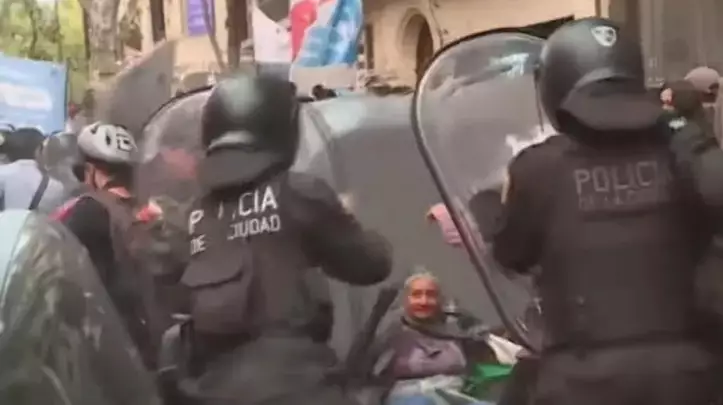 El hecho se registró en la intersección de Avenida de Mayo y 9 de Julio, donde efectivos de la Policía de la Ciudad intentaban dispersar a los manifestantes con el objetivo de que permanezcan en el Congreso.
