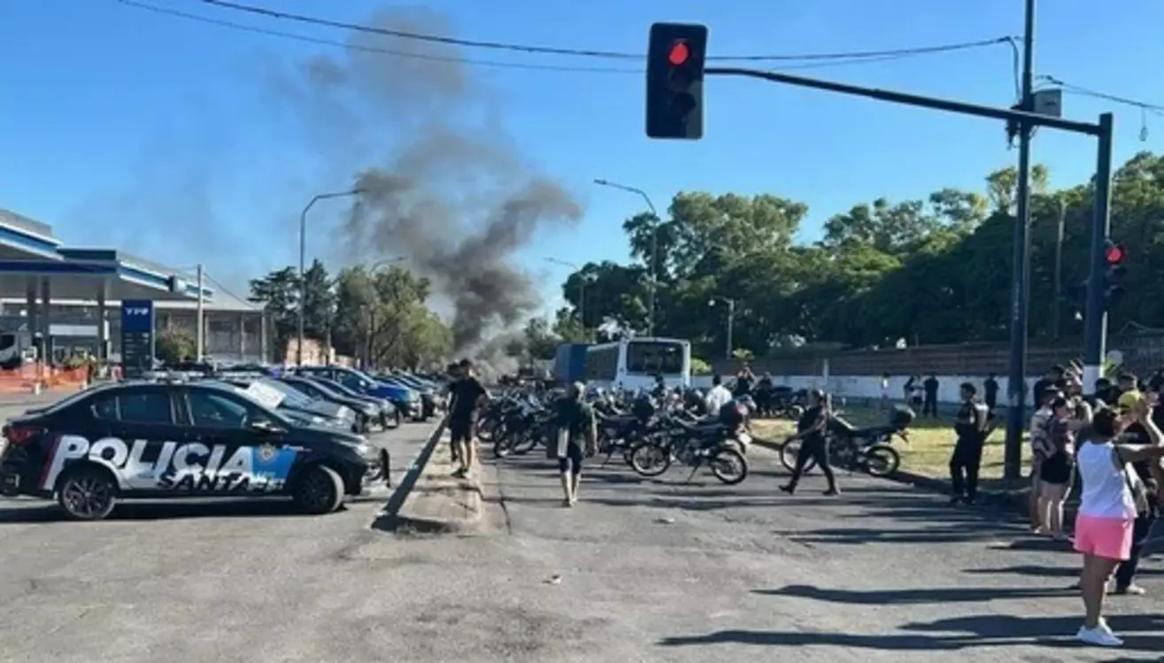 A su vez, los policías también se manifestaron durante la mañana de este martes frente a la Jefatura de la Unidad Regional II de Rosario, donde hubo quema de cubiertas sobre la avenida Ovidio Lagos.